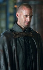 Joseph Fiennes' manipulative Merlin is bald, with his left cheek bisected by a thin horizontal scar. In an interview with TV critics last summer, he quotably described the character as "sort of a cross between Obi-Wan Kenobi and Donald Rumsfeld."